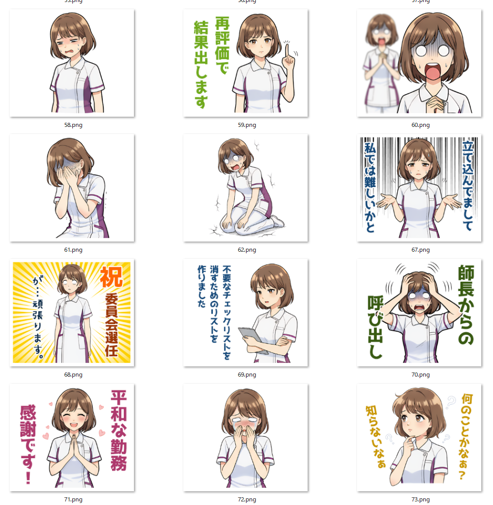 このキャラクターに、看護師さんになってもらい、LINEスタンプとして作れないかと思っていました。