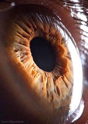 瞳が開くと、虹彩(茶色い部分)が分厚くなり、出口の近くに寄ってきます。